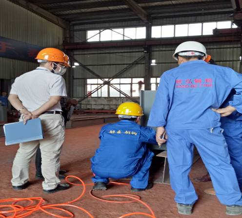 (圖一為省鋼協(xié)專家、其他參賽選手在觀摩鋼泰鋼構(gòu)參賽員工操作)